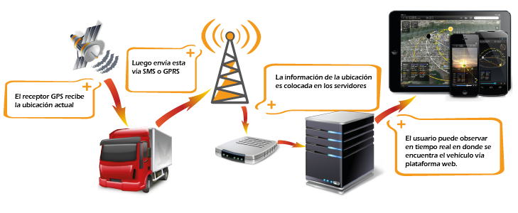 GPS (Global Positioning System) es una tecnología de geolocalización que está basada en la información suministrada por satélites que giran alrededor de la tierra. El receptor gps capta la señal de por lo menos tres satélites y calcula su ubicación mediante las diferencias en la velocidad de obtención de las tres señales Para que el usuario pueda obtener la ubicación del dispositivo gps, este debe ser capaz de enviarle la información vía alguna tecnología celular. Los dispositivos de DTrack utilizan GSM y GPRS para el envío de dicha información